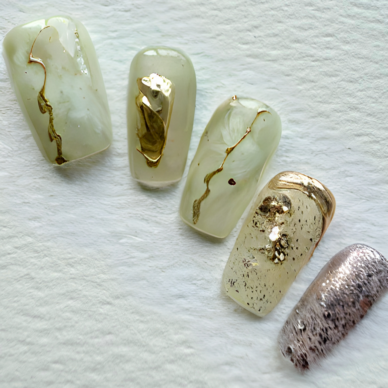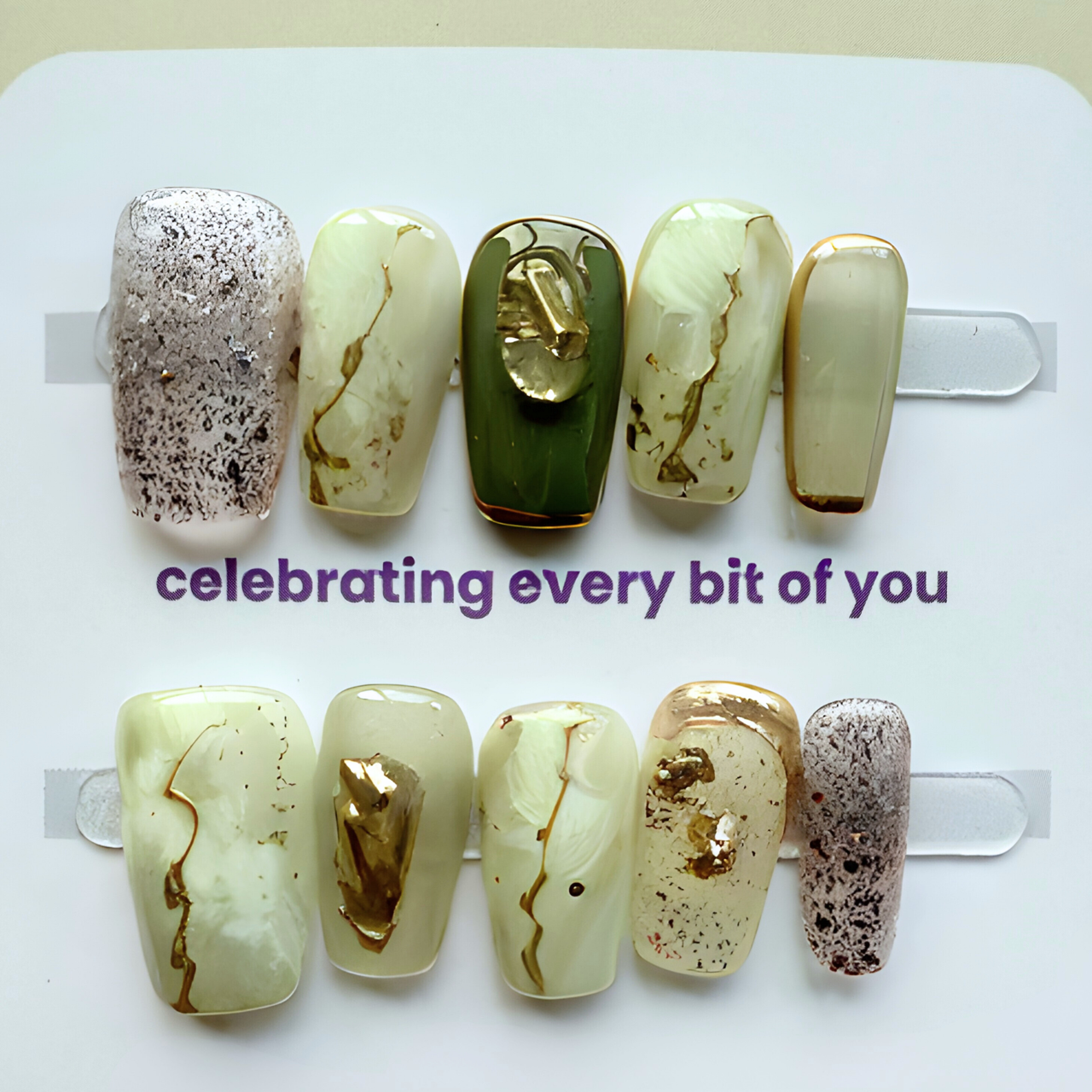 Shimmering tones and delicate marbling create a look that feels straight out of a storybook. Enchanted Grove press-on nails are soft yet striking, made for the girl who carries a little fairytale wherever she goes.